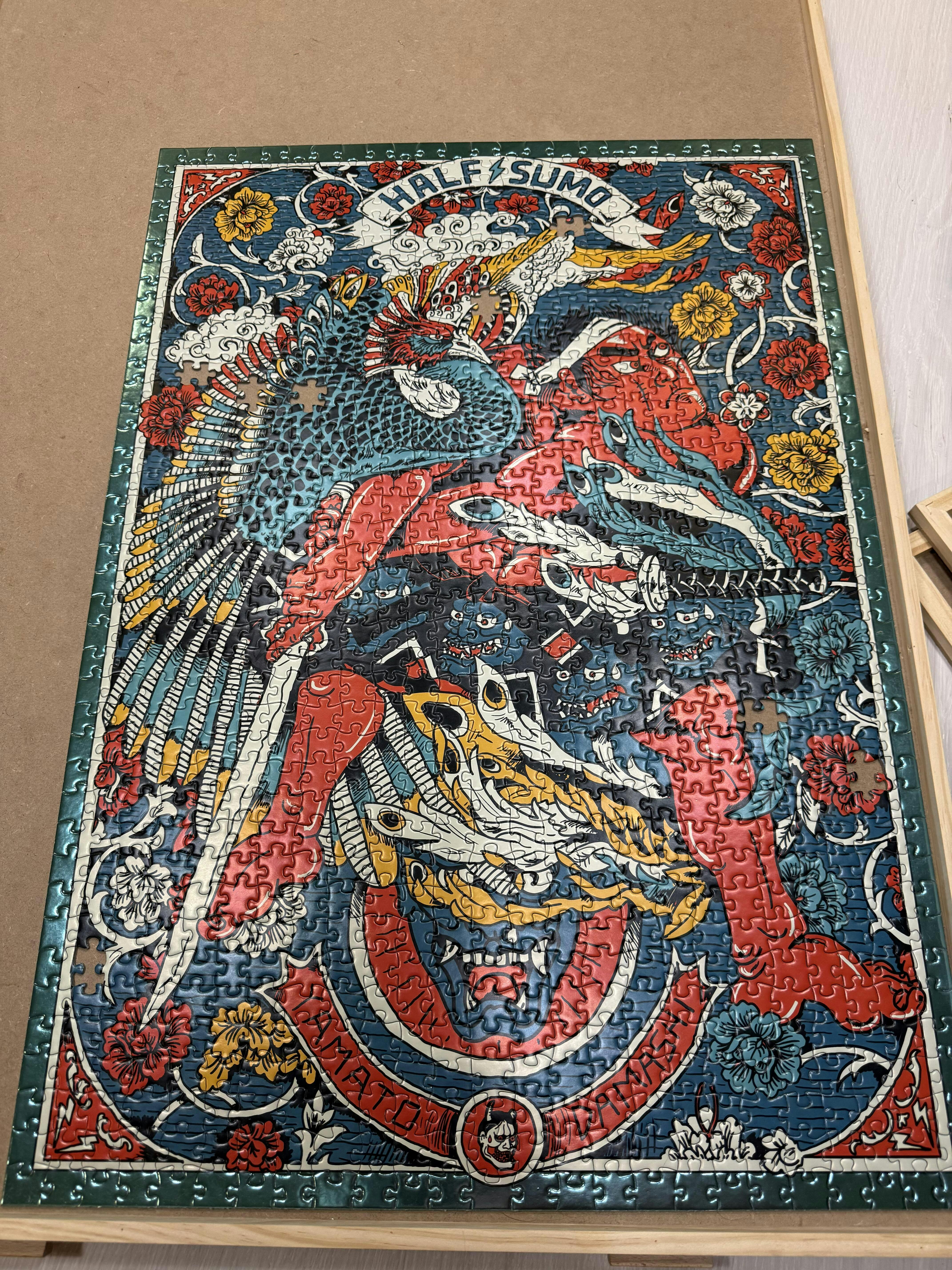 1000 uniquely shaped pieces printed for the first time with special metallic colors to give the final artwork a special unique look, this Halfsumo Damashi puzzle is gonna challange even the most experience puzzle master for days.
