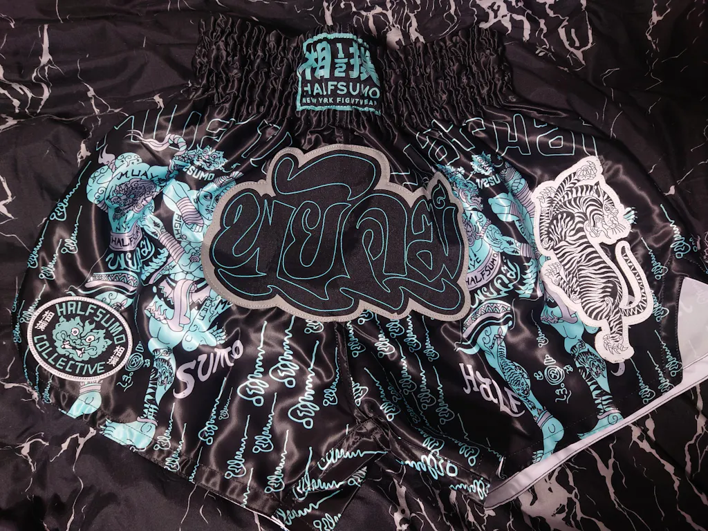 All lines are sublimated there in inspiring original Half Sumo style. A few flat woven patches sewn on the shorts render this amazing art piece even more unique.