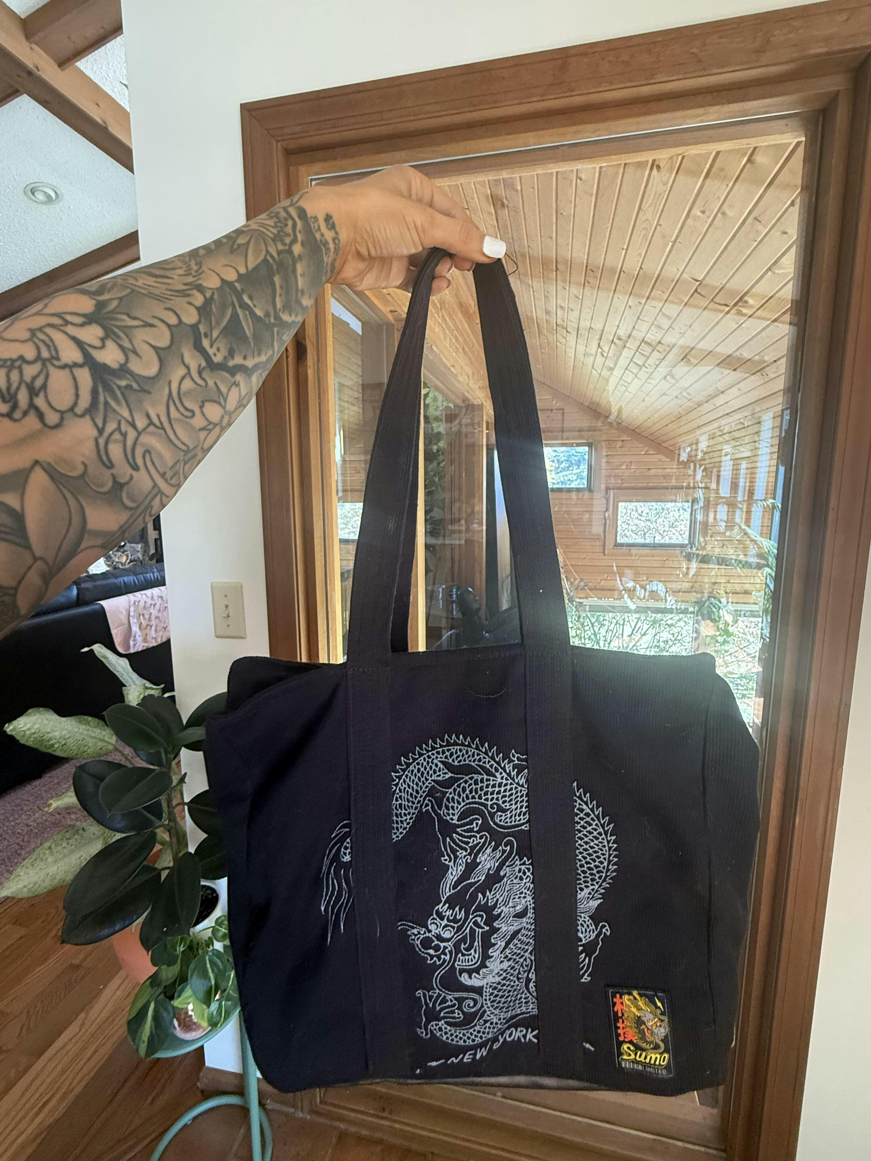Introducing the new Ryu Pearl Weave Tote Bag by Half Sumo—a bold creation inspired by dragon lore and designed for the modern martial artist. Crafted in striking 450gsm Pearl Weave kimono material, reinfoirced by a sublimated nylon internal lining, this bag is our all around every day go to bag.