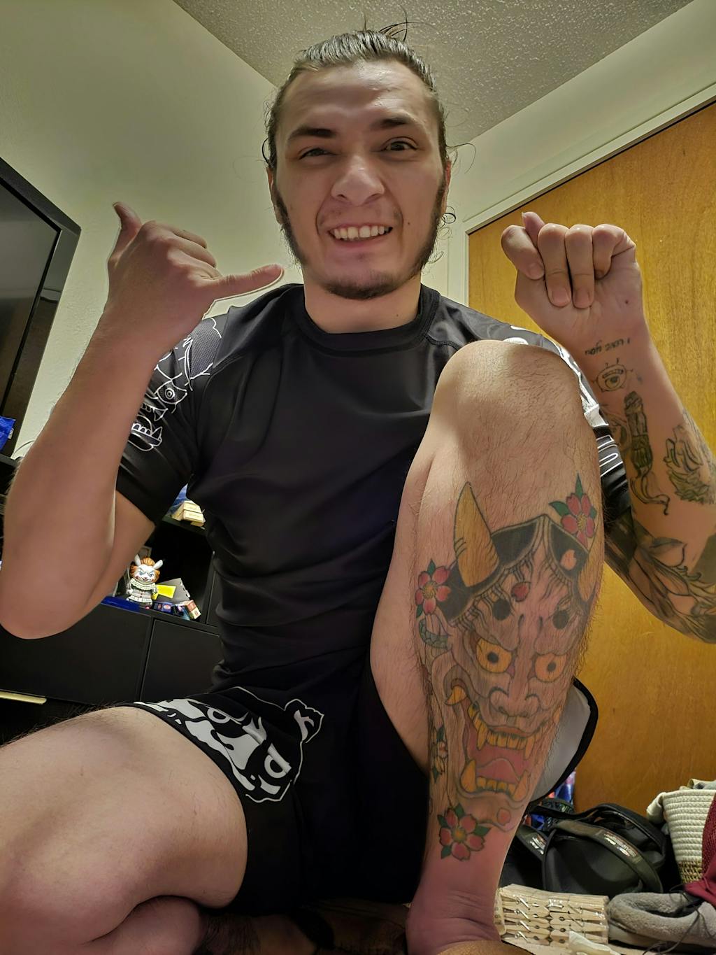 Every hand drawn Irezumi style drawing has been reproduced with high fidelity on moisture wicking poly-spandex blend, with premium perforated side panels for increased breath-ability and feel. All graphics are sublimated to insure all art details are properly reproduced with no fading whatsoever.